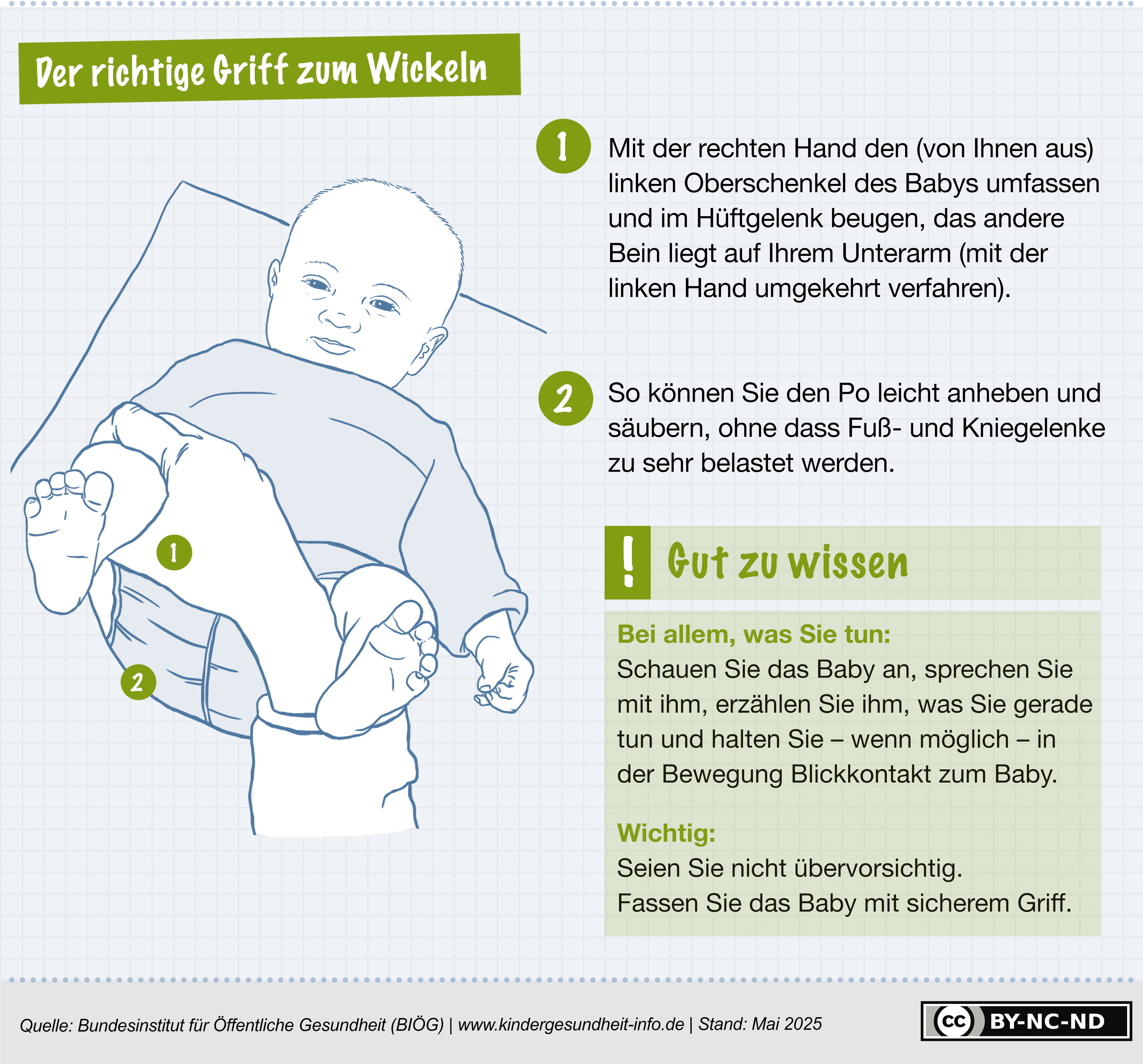 Wie halte ich mein Baby beim Wickeln? Der richtige Griff beim Wickeln des Babys, wie Hebammen ihn empfehlen.