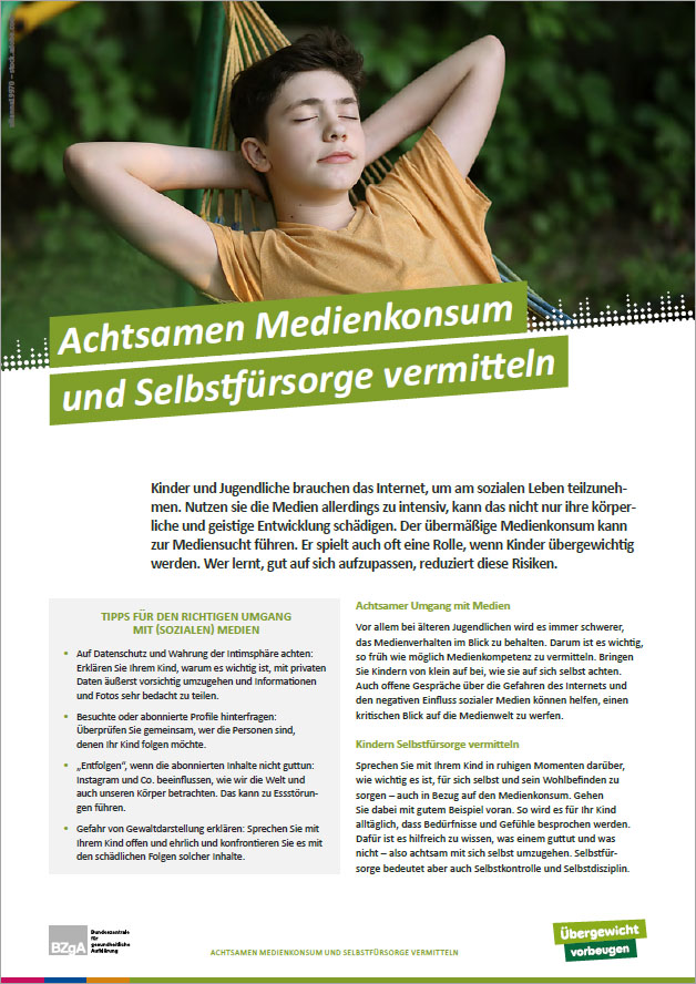 - Vorbild sein: Eltern sind Vorbilder. Gehen Sie selbst bedacht mit Computer und Smartphone um. Lassen Sie sich bei gemeinsamen Mahlzeiten und bei Gesprächen mit Ihrem Kind nicht durch das Handy stören.