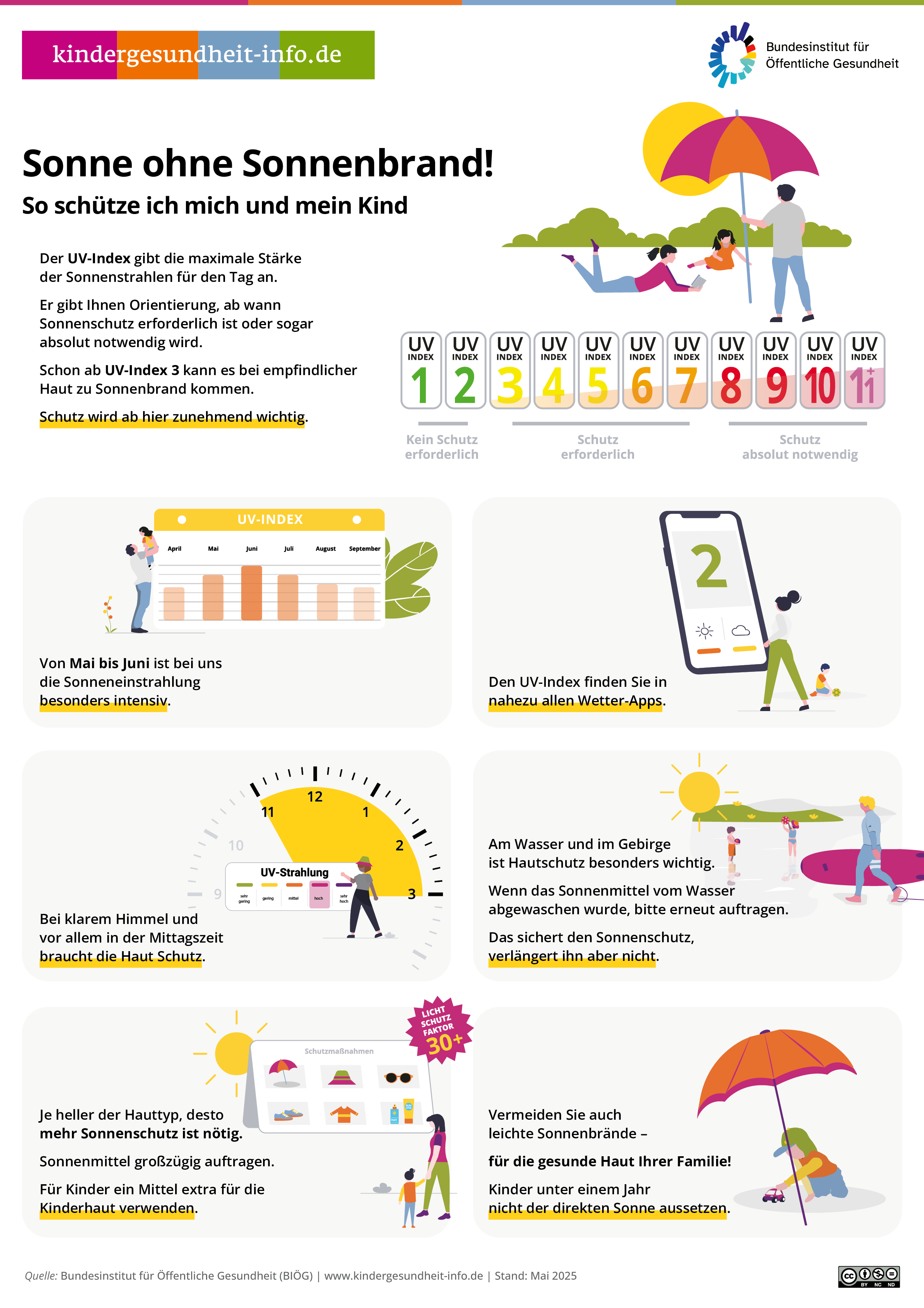 Die Infografik zeigt Ihnen die wichtigsten Fakten und Tipps, um sich und Ihre Kinder vor einem Sonnenbrand zu schützen.