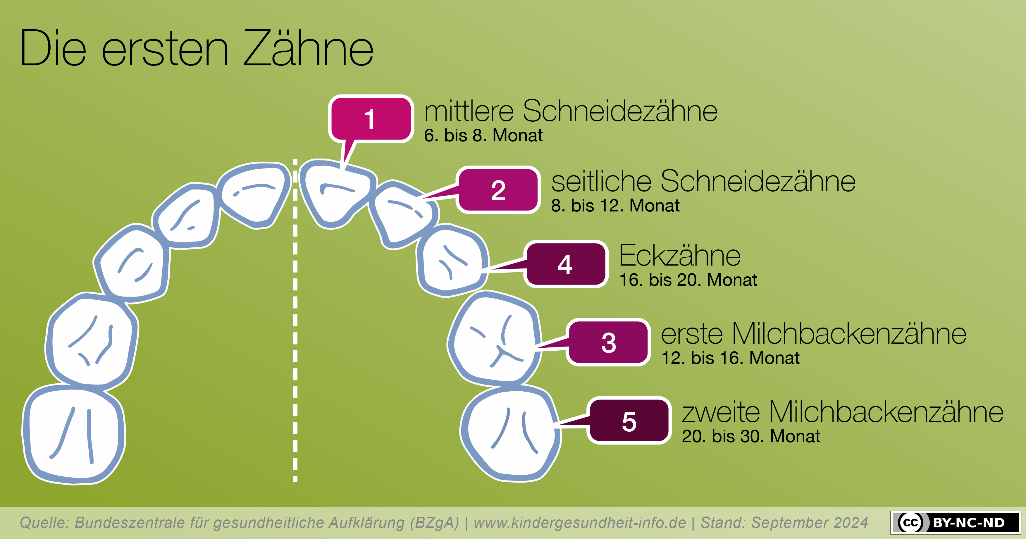 Wann bekommt das Baby seinen ersten Zahn? In welcher Reihenfolge folgen die restlichen Milchzähne?